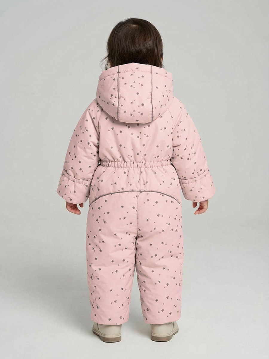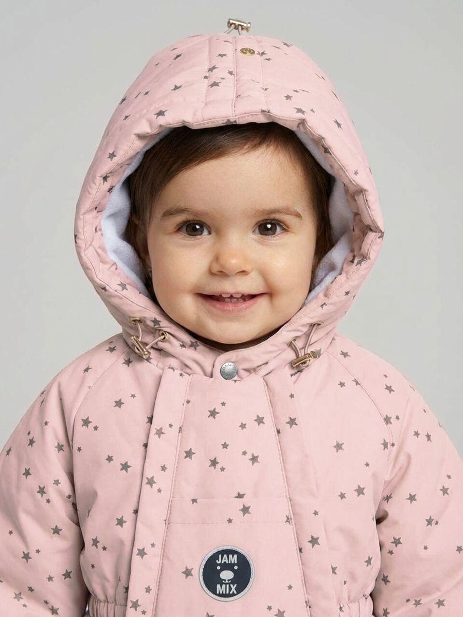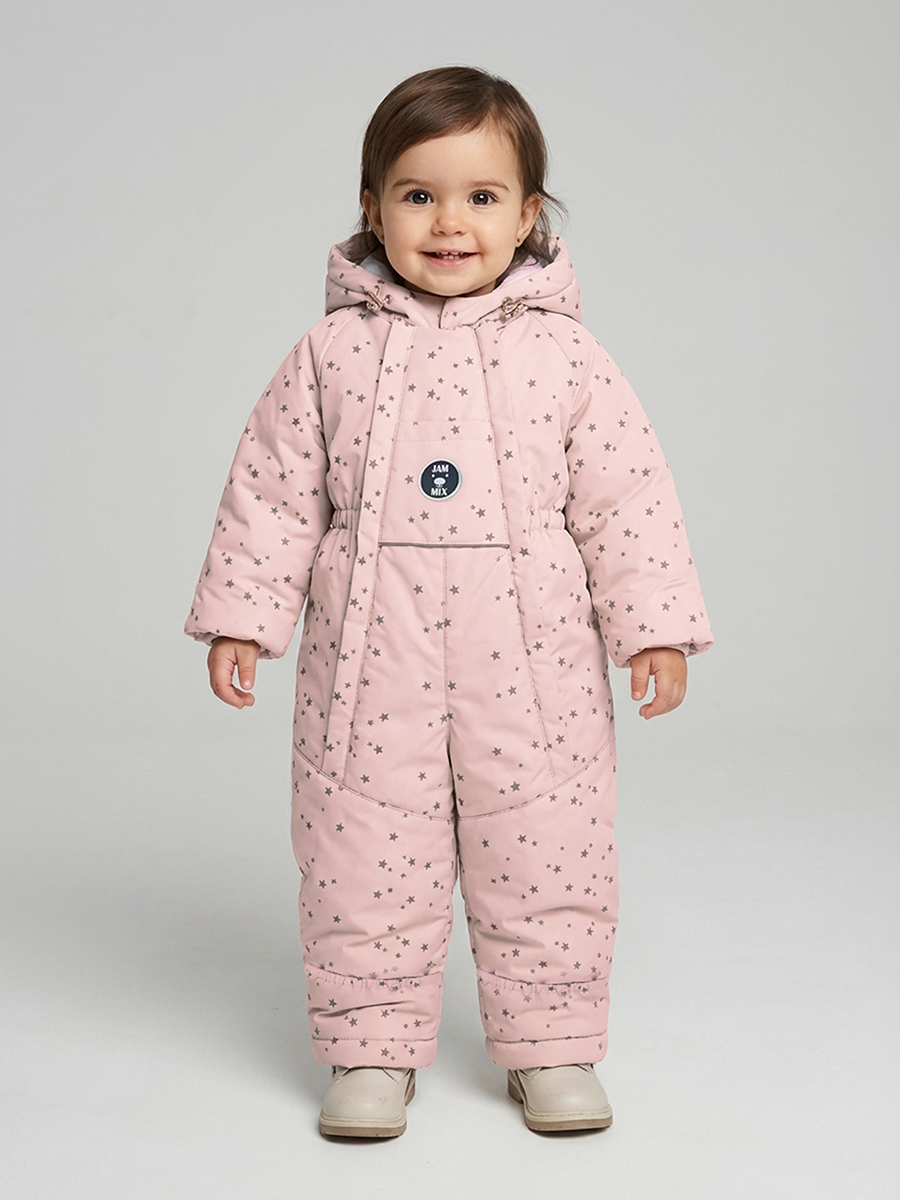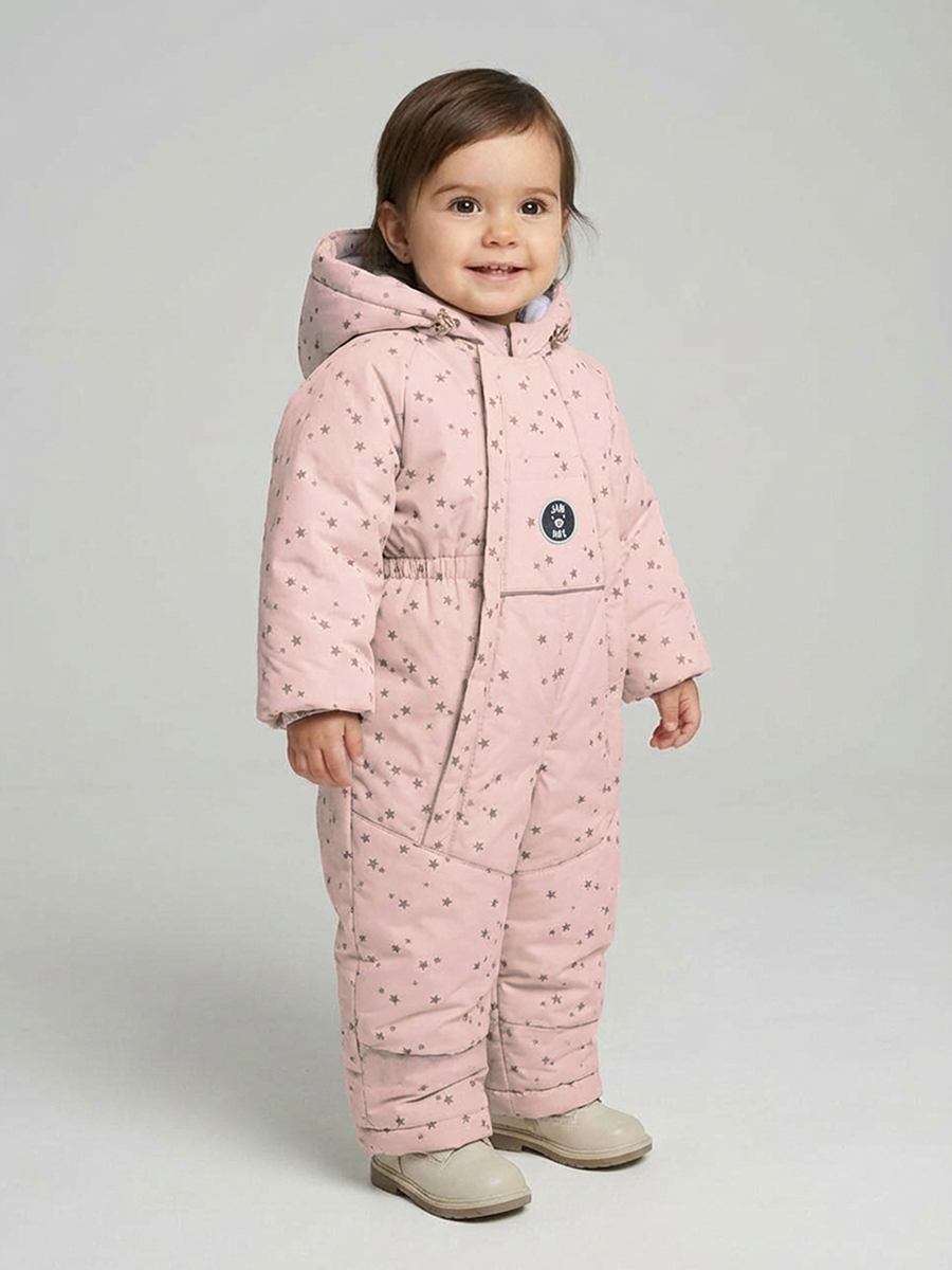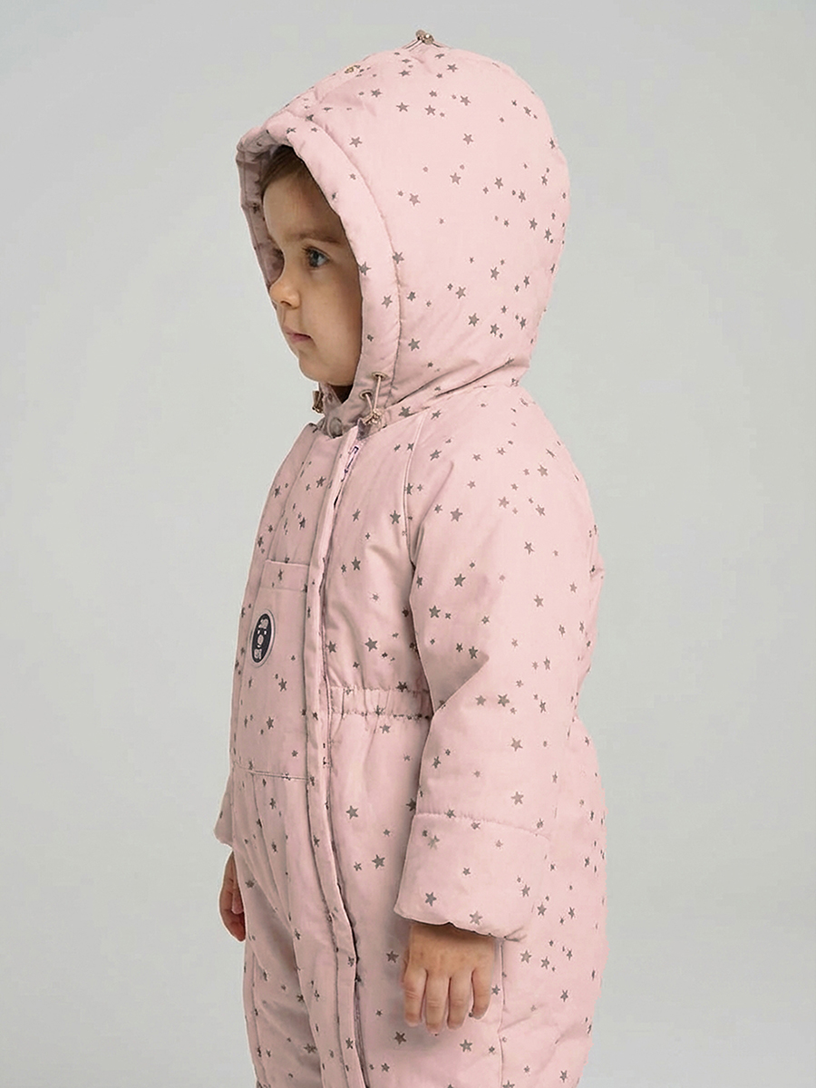 Зимний ясельный комбинезон- конверт из мембранной ткани с бархатным принтом из флока.