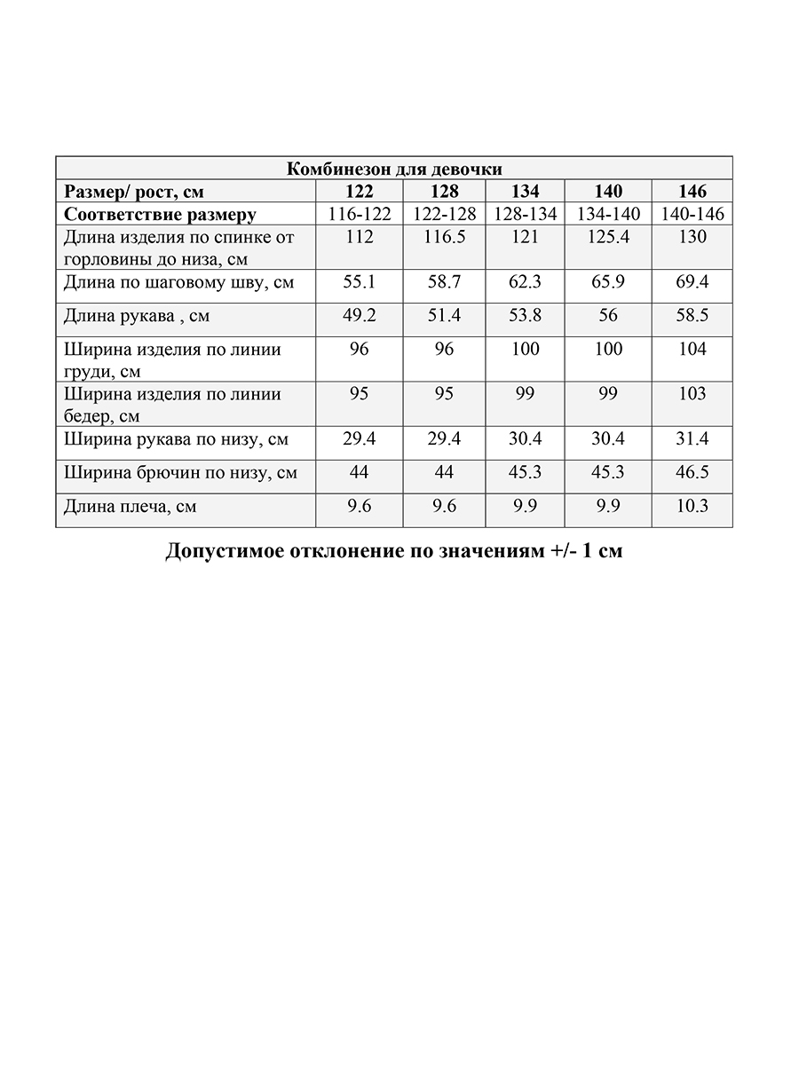 - Размерный ряд - 122