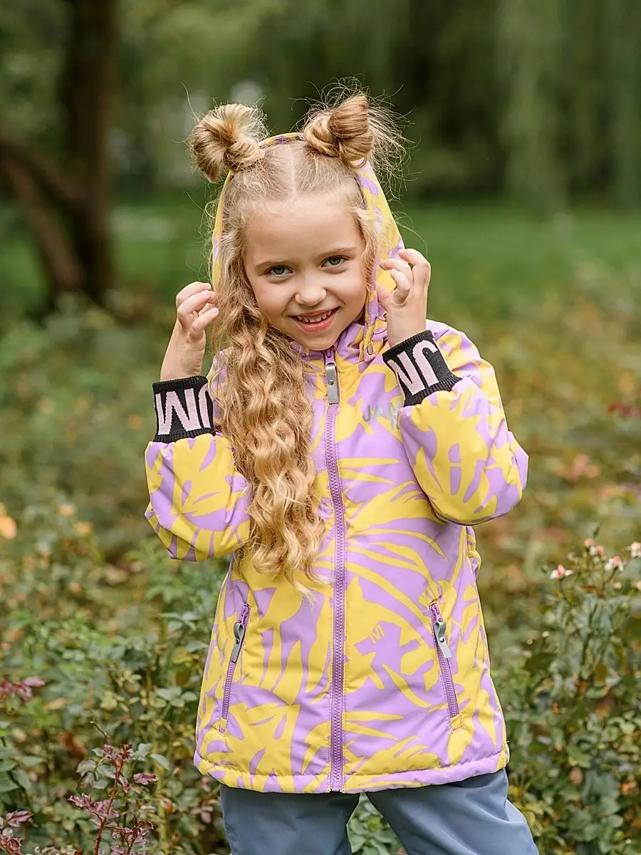 Демисезонная мембранная куртка для девочки в принте ПАРАДИЗ .