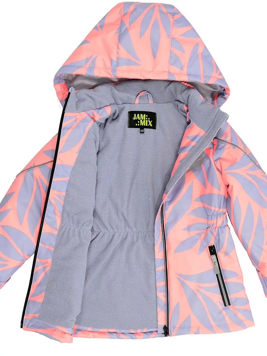 Яркий вариант для повседневных прогулок и похода в школу. Стильный принт и светоотражающие элементы нацелен на юных модниц. Фирменный утеплитель Jammix не даст ребенку замерзнуть весной/осенью даже при -5 градусах. Температурный режим до +15. Особенности: приятная на ощупь ткань, накладные карманы с листочками, рукава с резинкой, утяжка внутри по талии, ветрозащитная планка по борту.