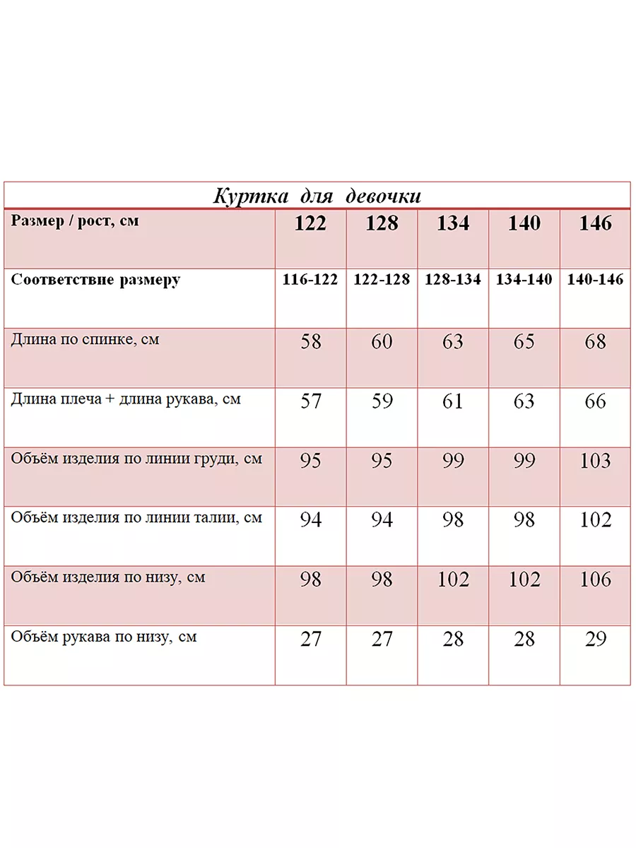 - Размерный ряд - 122
