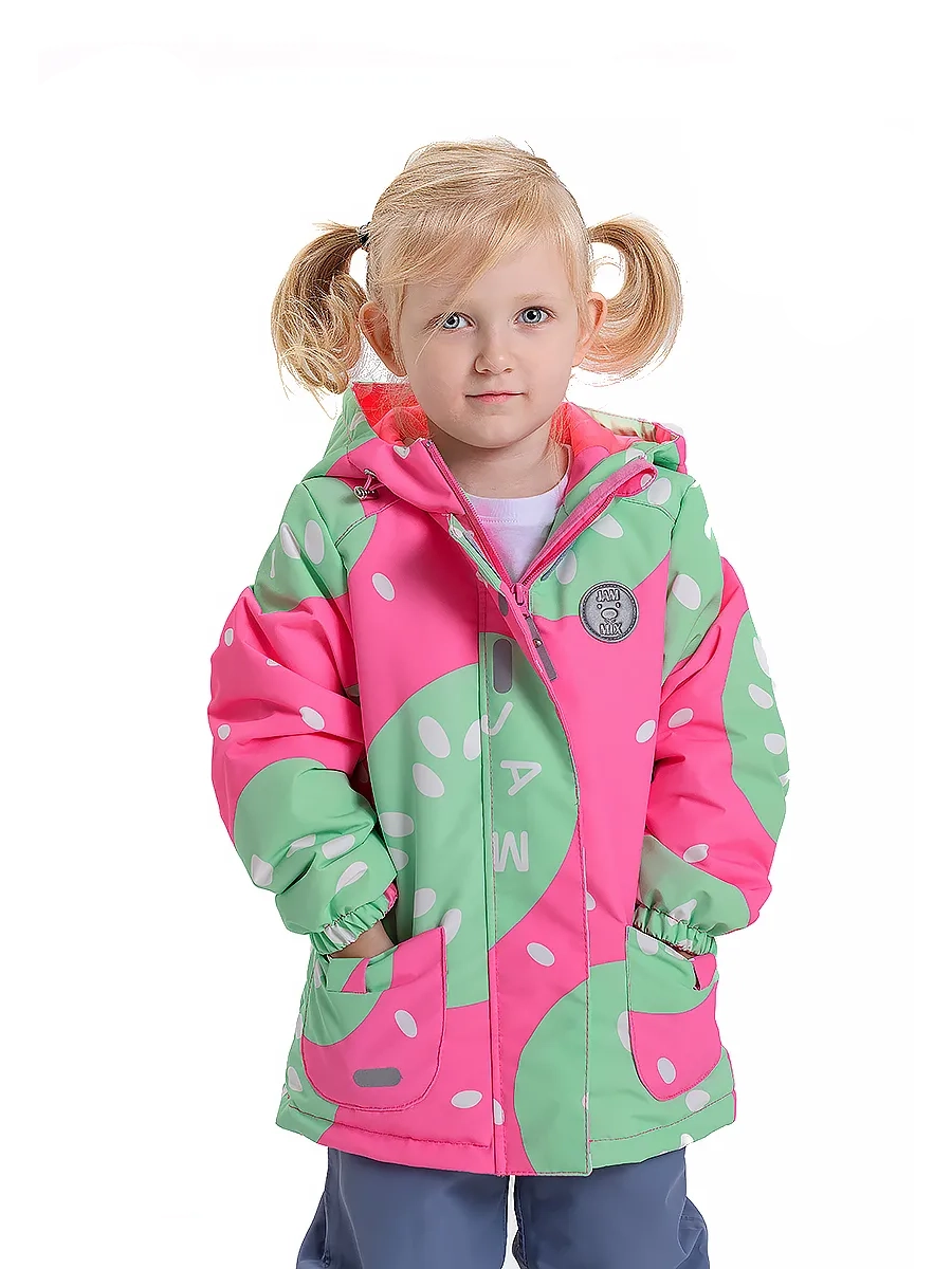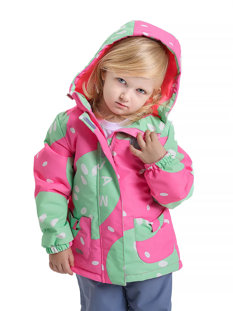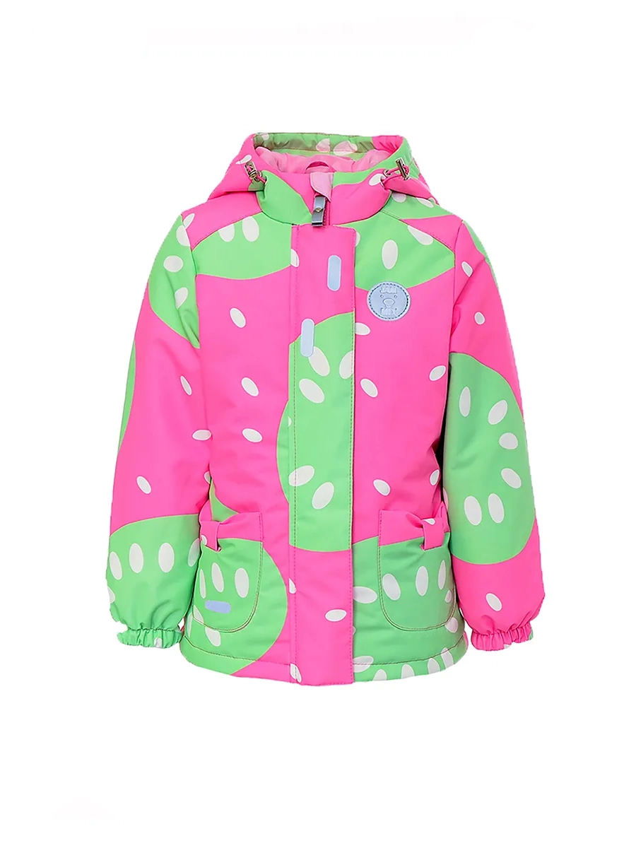 Демисезонная куртка для девочки из мембранной ткани 5к/5к с ярким дизайнерским принтом КИВИ .