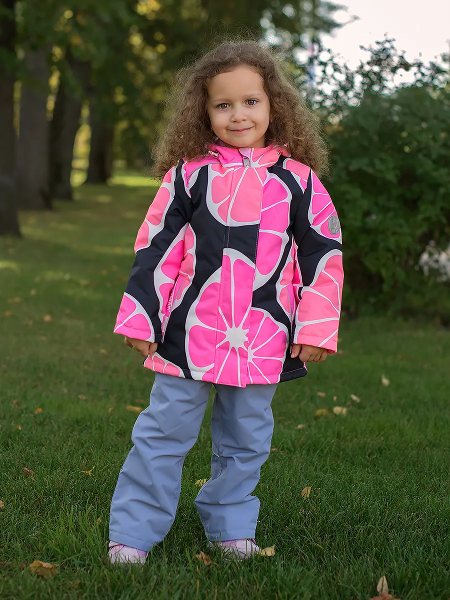 Демисезонная куртка для девочки из мембранной ткани 5к/5к с ярким дизайнерским принтом ORANGE .