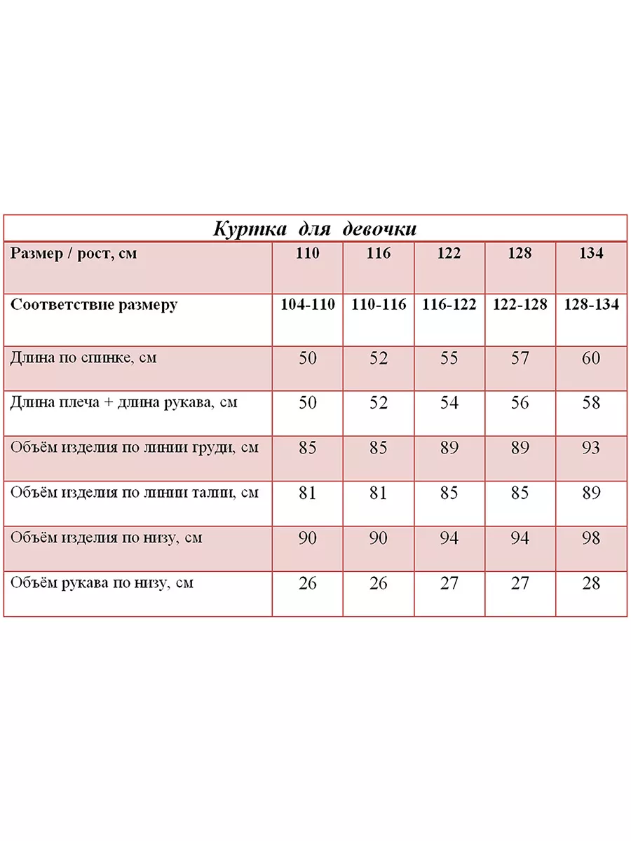 - Размерный ряд - 110