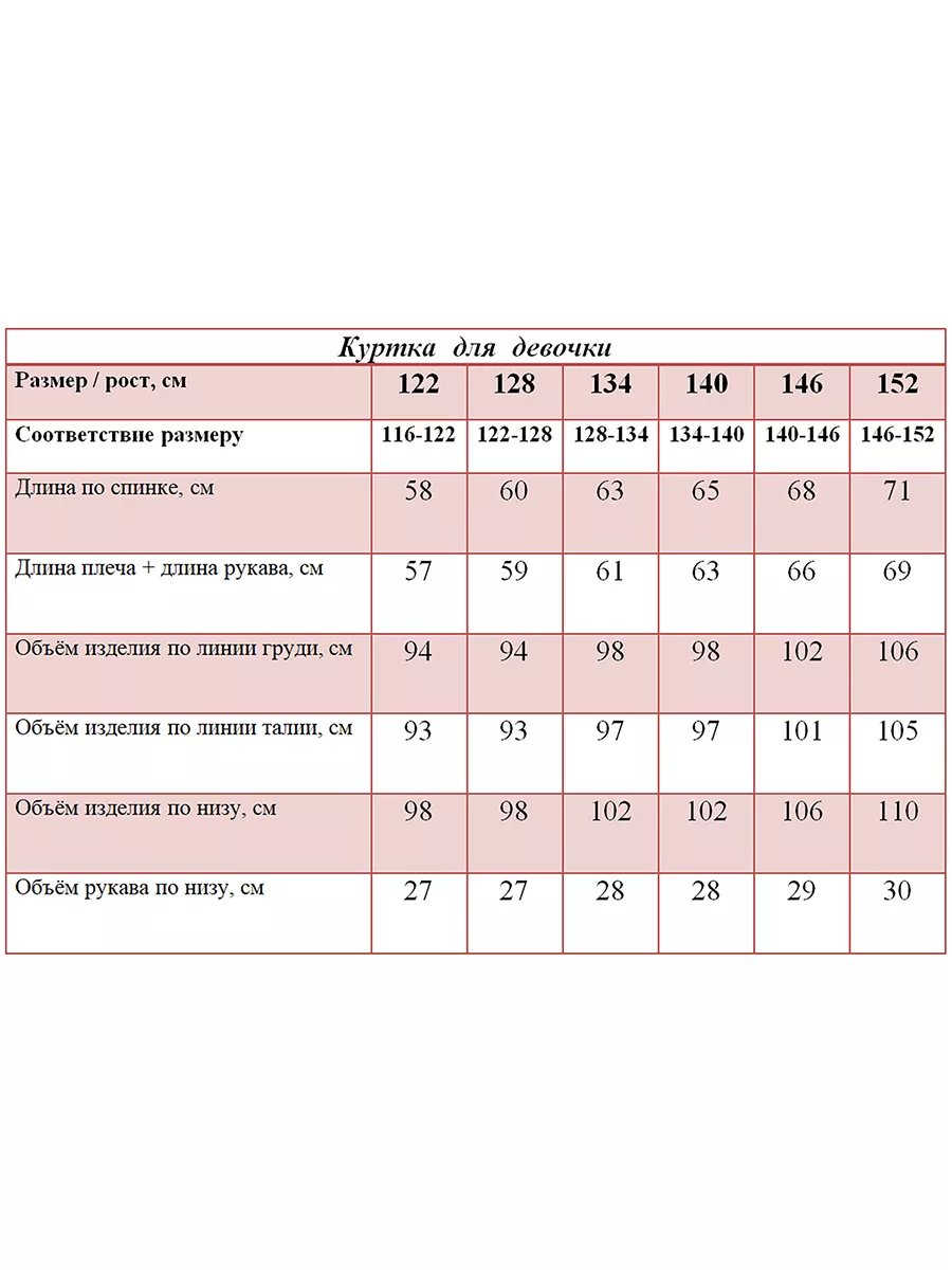 - Размерный ряд - 122