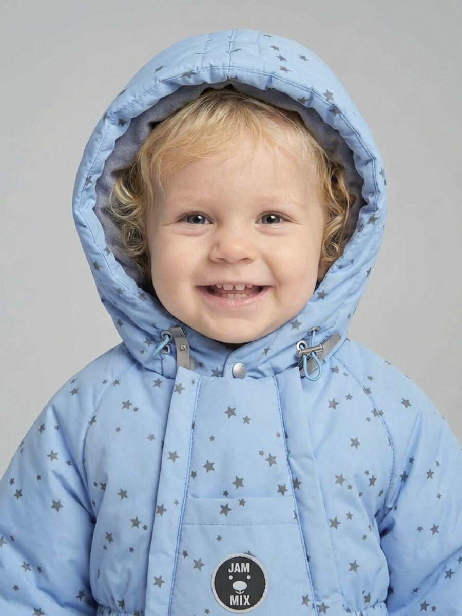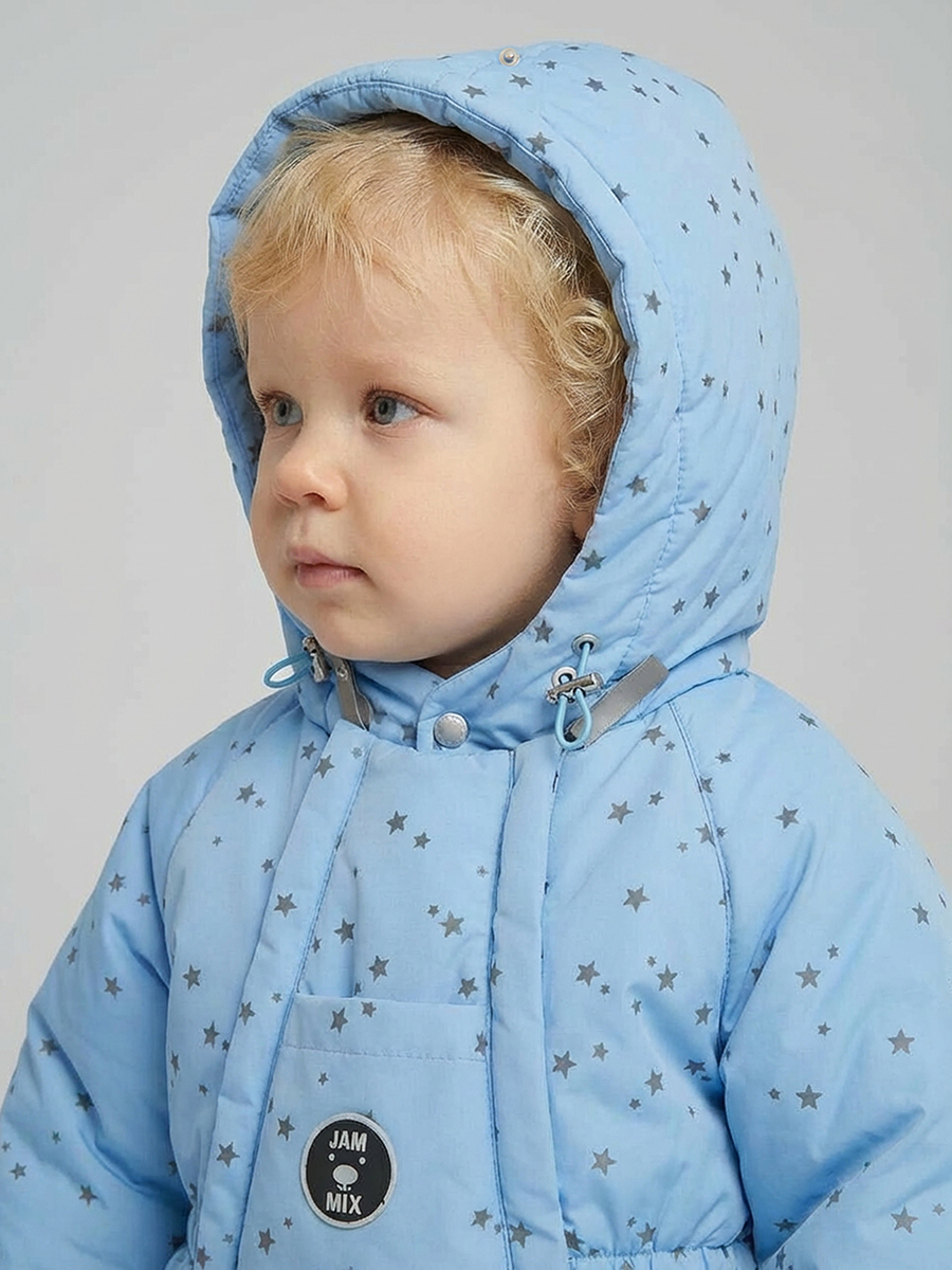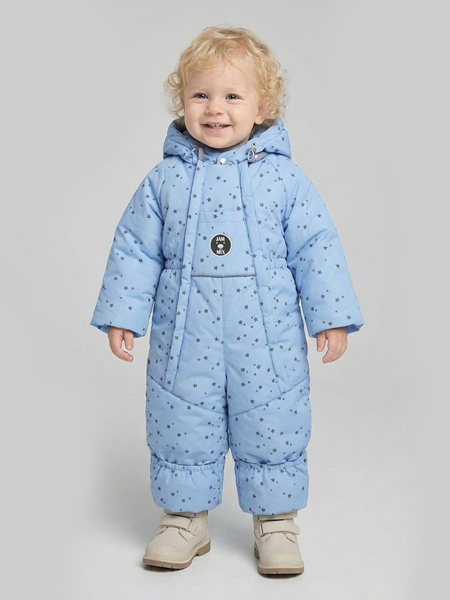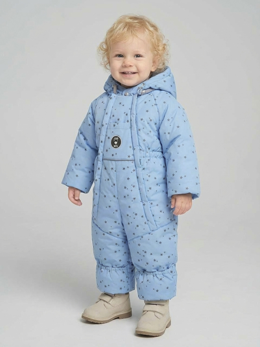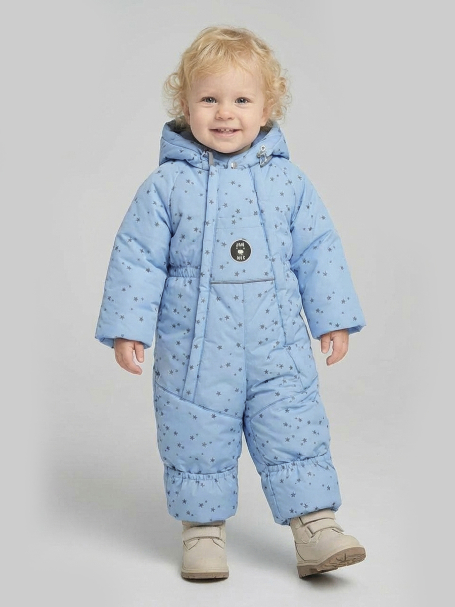 Зимний ясельный комбинезон- конверт из мембранной ткани с бархатным принтом из флока.